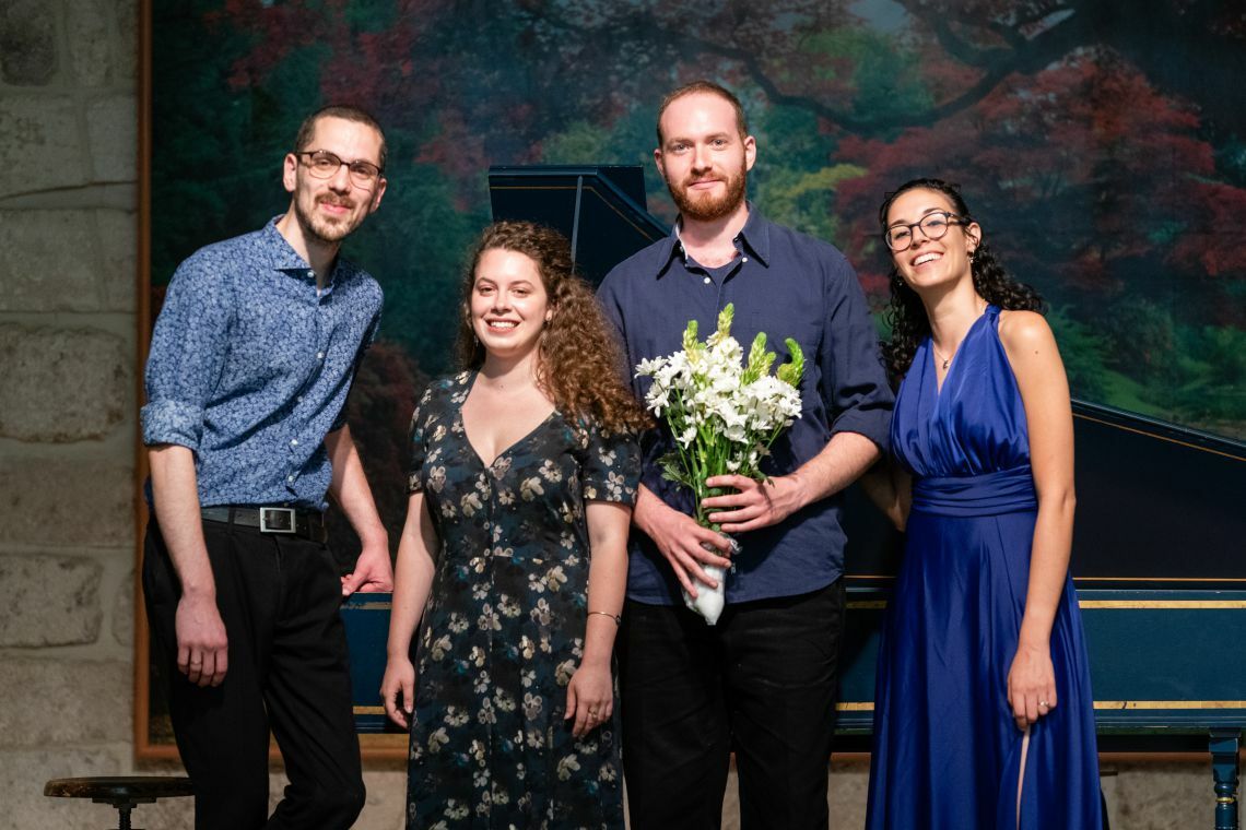 רינת ארליכמן, כנרית, סיימה תואר ראשון בבית הספר ג'וליארד בניו יורק ותואר שני באוניברסיטת רייס ביוסטון, טקסס. השתתפה בתכניות פרלמן וגודלמן לנגנים מצטיינים והפילהרמונית הישראלית הצעירה. הופיעה ברסיטלים בארץ ובעולם וכן במשכן נשיא מדינת ישראל. מנגנת בכינור שבנה ג'ופרדו קאפה, בהשאלתו הנדיבה של יהודה זיסאפל הפסנתרן איתמר פרג בעל תואר ראשון ושני מביה"ס למוסיקה ע" בוכמן מהטה באוניברסיטת תל-אביב, לומד לימודי דוקטורט באוניברסיטת מקגיל, במונטריאול. מופיע כסולן עם תזמורות בארץ ובעולם, זכה בתחרויות רבות, ביניהן לאחרונה בפרס הראשון בתחרות ע"ש פנינה זלצמן הצ'לן מאי אנדי בעל תואר הראשון מבית הספר למוסיקה באוניברסיטת תל-אביב, בה היה חבר בהרכב הקאמרי הייצוגי של בית הספר. לאחרונה סיים את לימודי התואר השני בבית הספר למוסיקה מנהטן אשר בניו יורק. חבר בתכניות גולדמן ופרלמן לנגנים מצטיינים והפילהרמונית הישראלית הצעירה. ניגן כסולן באולם הקרנגי הול בקונצרט התרמה מטעם האו"ם. מנגן על צ'לו וקשת המושאלים לו באדיבות קרן התרבות אמריקה ישראל